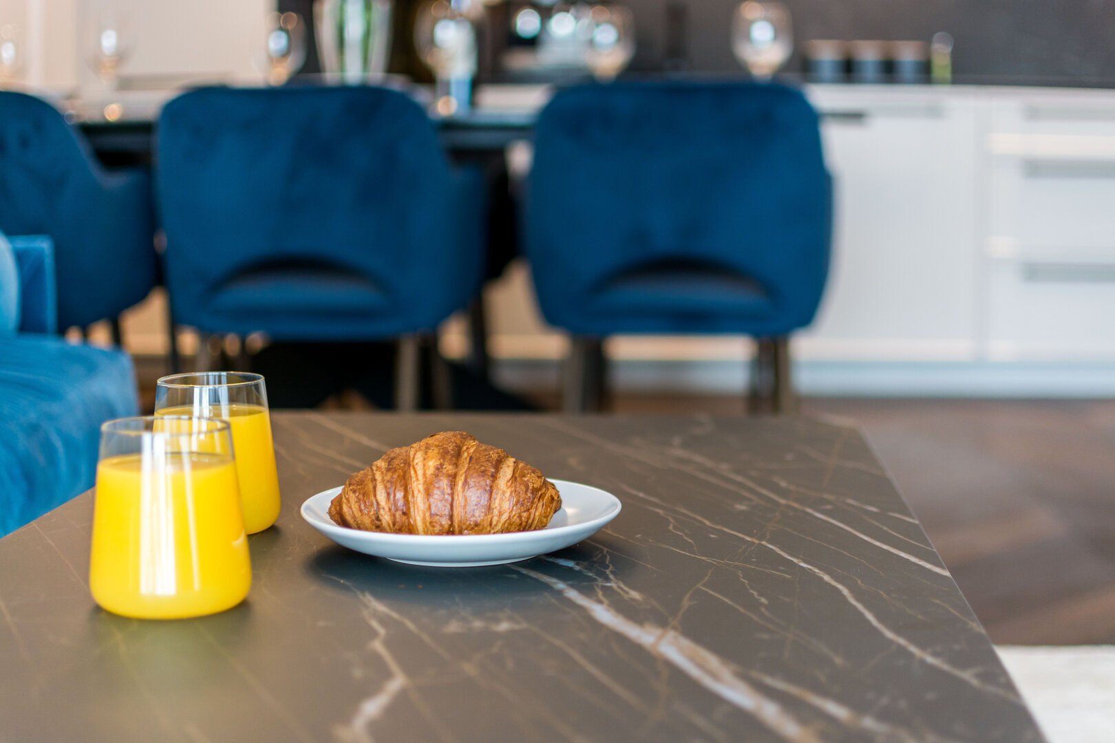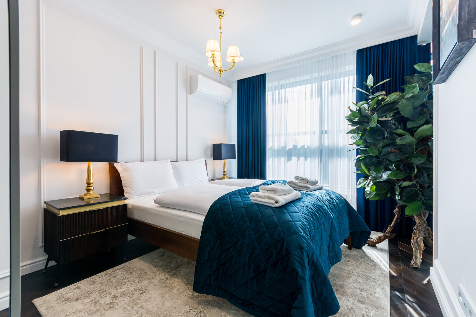 Address: Augustiańska Street 24, Kraków A modern building with a lift, a private parking (for an extra fee) and 24h security. Air-conditioned, two-level penthouse. 2 bedrooms, living room with a kitchenette, 2 bathrooms, 2 balconies.