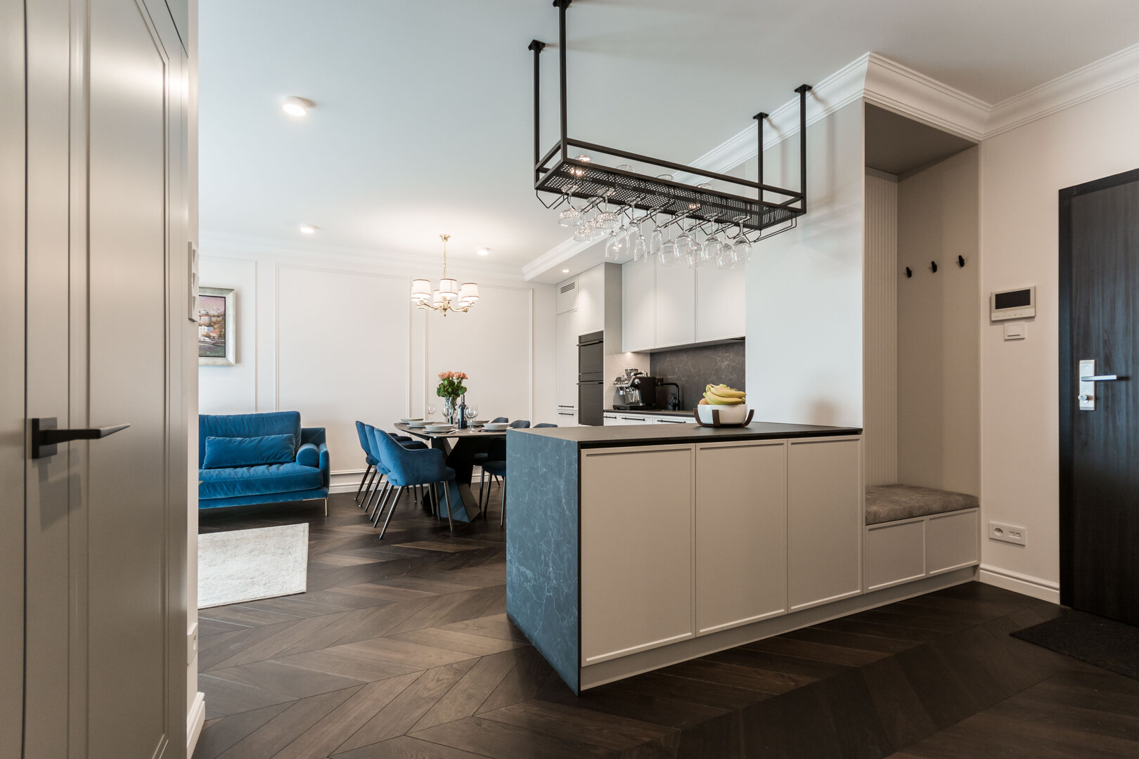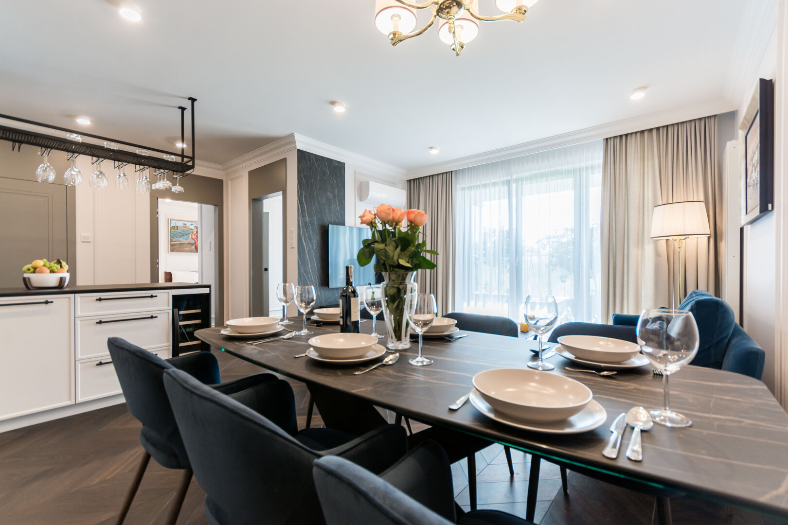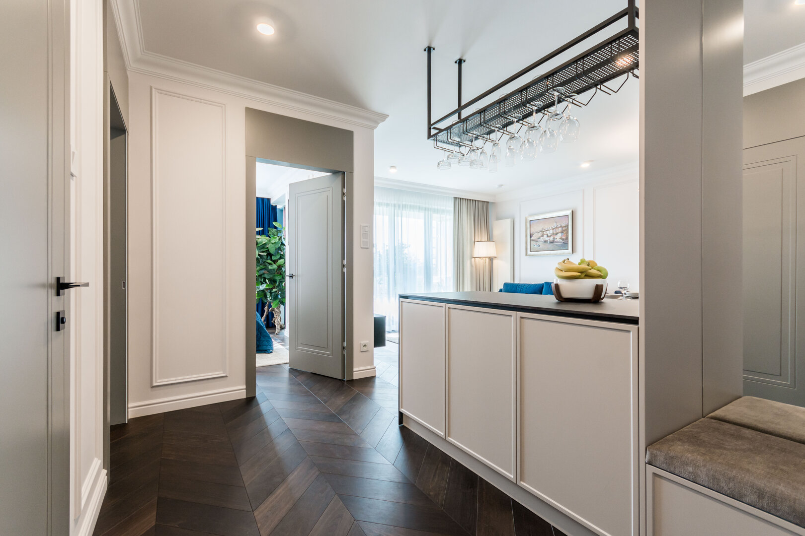 Address: Augustiańska Street 24, Kraków A modern building with a lift, a private parking (for an extra fee) and 24h security. Air-conditioned, two-level penthouse. 3 bedrooms, living room with a kitchenette, terrace, balcony.